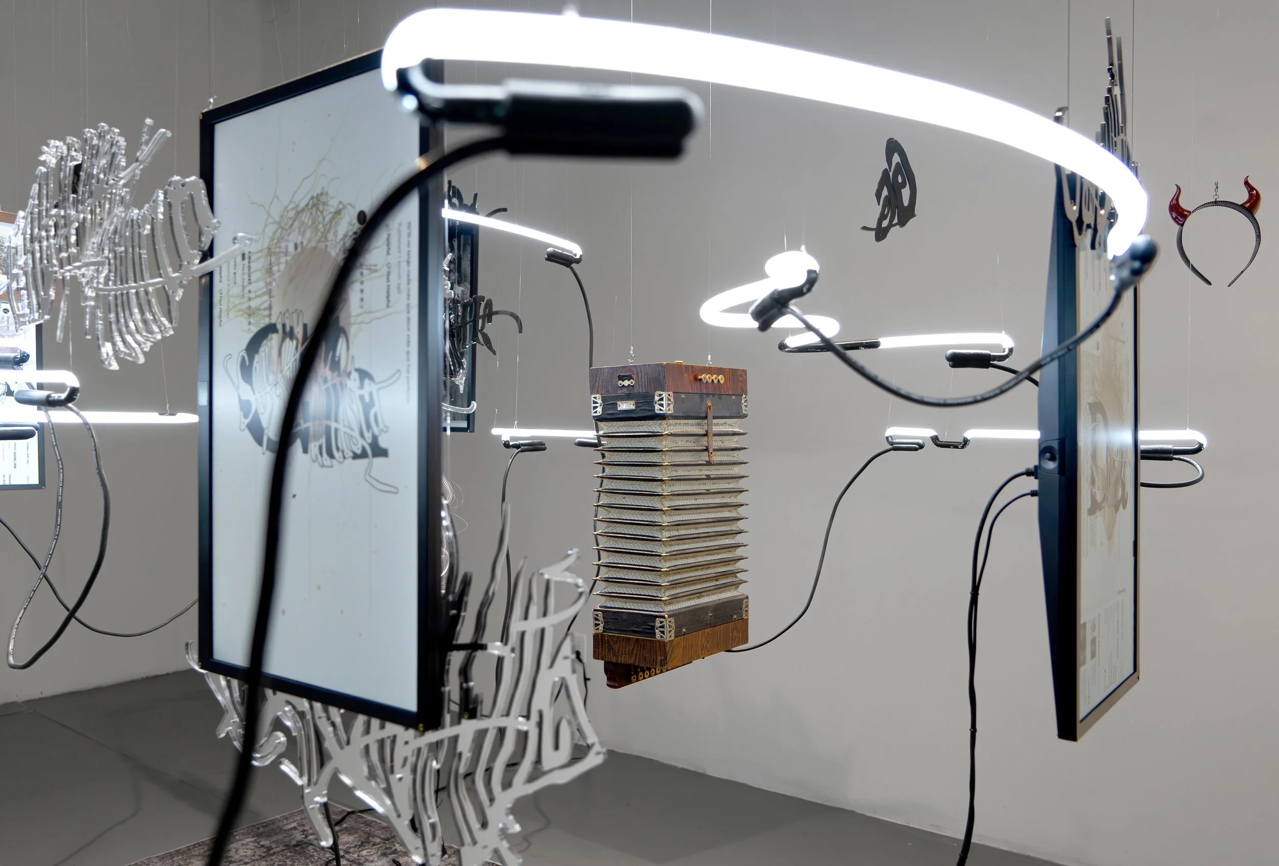Avatopology (detail), Multi-channel 3D animations, sculptural objects, neon light, artist zine, Dimensions variable, installation view at NARS Foundation (NY), Curated by Natasha Chuk, 2024, Courtesy of the artist.